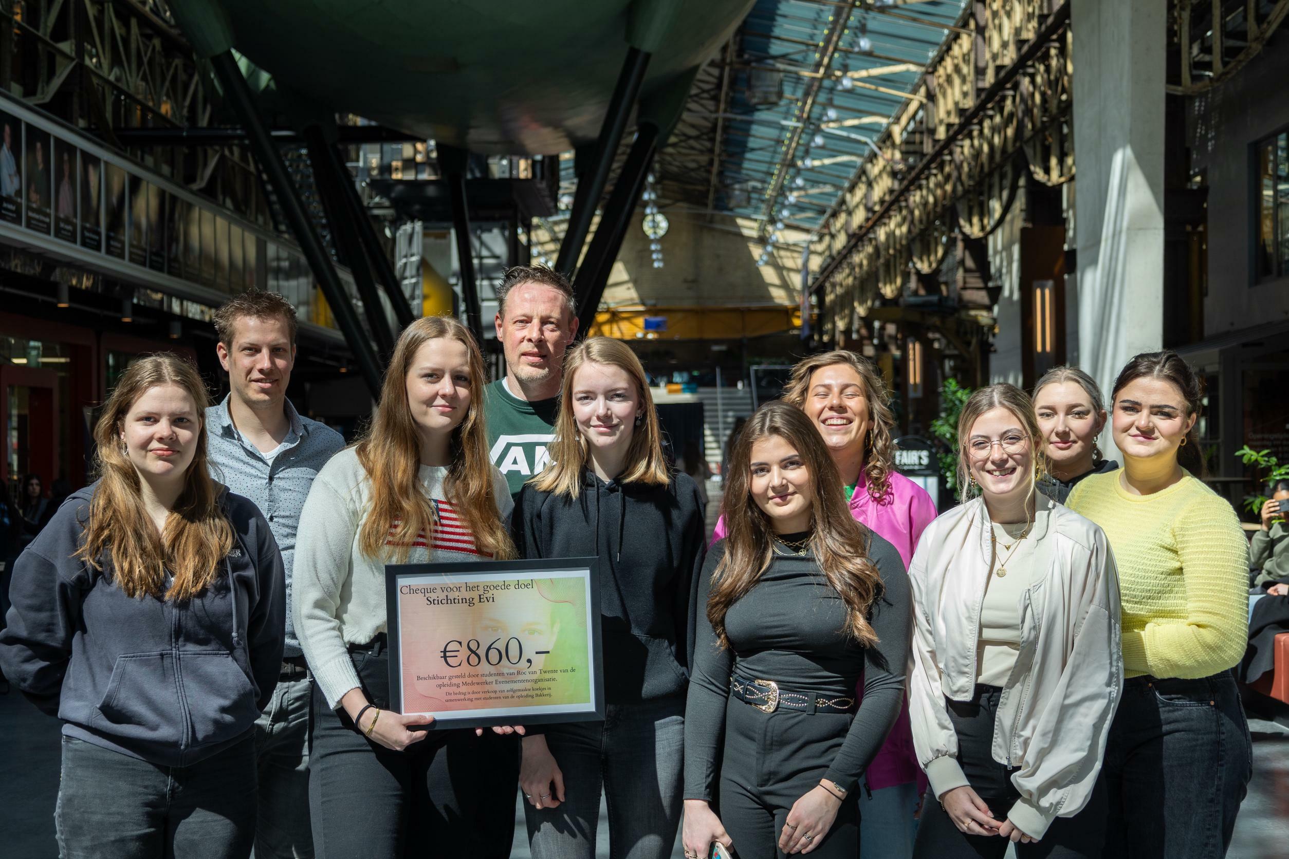In de afgelopen maanden heeft een groep studenten van de opleiding Medewerker Evenementenorganisatie in Hengelo, met medewerking van de studenten van de bakkersopleiding, koekjes gebakken en verkocht en hierbij een bedrag van € 860,- opgehaald.